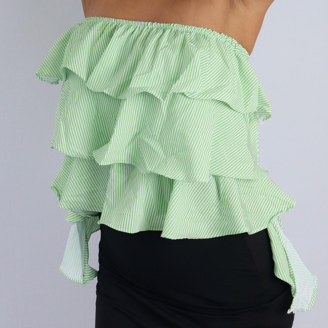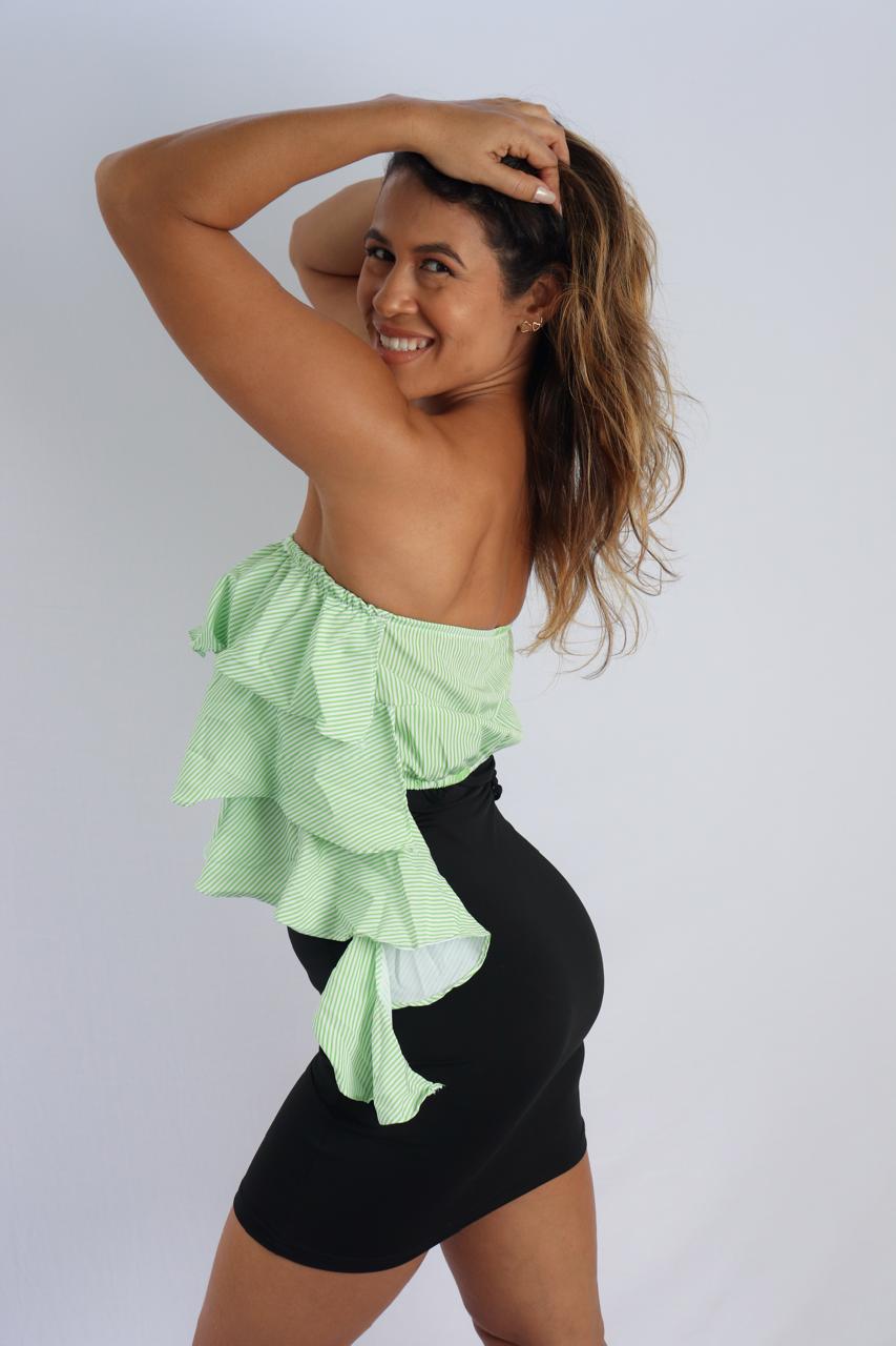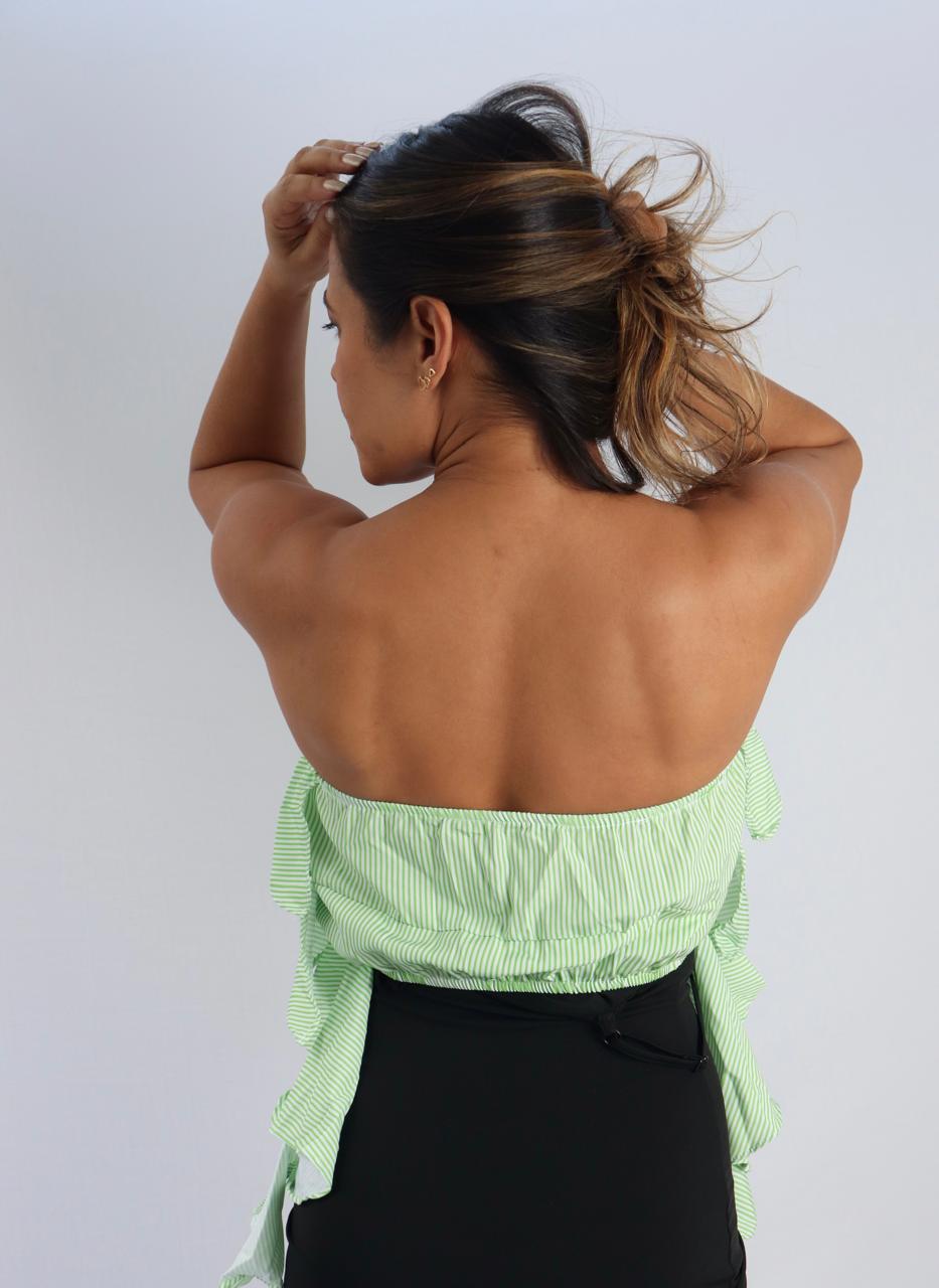 Com detalhes de babados suaves, essa blusinha é perfeita para criar looks leves e elegantes.