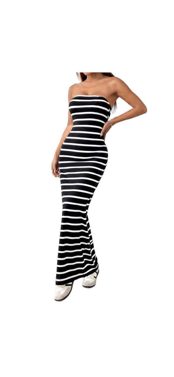 Realce seu estilo com este Vestido Longo Tomara que Caia Listrado. A peça conta com uma estampa clássica de listras em preto e branco, que oferece um visual moderno e atemporal. O design tomara que caia destaca o colo e ombros, enquanto a fenda lateral proporciona um toque de sensualidade e liberdade de movimento. Ideal para ocasiões casuais ou eventos informais, esse vestido combina perfeitamente com tênis ou sandálias, trazendo versatilidade e conforto ao seu guarda-roupa.
